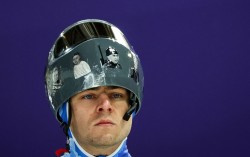 지난 9일(현지시간) 우크라이나의 블라디슬라프 헤라스케비치가 2026 밀라노·코르티나담페초 동계올림픽을 앞두고 코르티나 슬라이딩센터에서 진행된 남자 스켈레톤 훈련에 참가하기 전 러시아와의 전쟁으로 희생된 우크라이나 남녀 선수들의 사진이 담긴 헬멧을 착용하고 있다. AF…