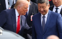 도널드 트럼프 미국 대통령과 시진핑 중국 국가주석이 지난해 10월 30일 부산 김해공군기지 의전실 나래마루에서 미중 정상회담을 마친 뒤 회담장을 나서며 대화하고 있다. 중앙포토 오는 4월 초 베이징에서 열릴 예정인 미·중 정상회담에서 무역전쟁 휴전을 최대…