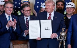 도널드 트럼프 미국 대통령이 11일(현지시간) 워싱턴DC 백악관 이스트룸에서 열린 석탄 에너지 장려 행사에서 ‘미국의 아름답고 깨끗한 석탄 발전 설비로 국가 안보를 강화한다’는 제목의 행정명령을 들고 있다. 로이터=연합뉴스 도널드 트럼프 미국 대통령은 11일(현지…