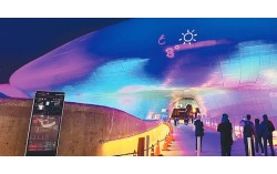 서울디자인재단 ‘드림 인 라이트’ 전면 파사드·입구를 무대로 운영 레이저·프로젝션 맵핑 외벽에 투사 내년부터 상설 프로그램으로 전환 DDP의 야간 미디어아트 프로젝트 ‘드림 인 라이트’에서 기상데이터를 표현하는 ‘스카이 라이트’가 외벽에 투사되고 있다. [사진 서울디…