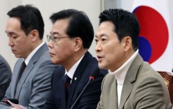 한병도 더불어민주당 원내대표가 5일 오전 서울 여의도 국회에서 열린 정책조정회의에서 발언을 하고 있다. 뉴시스 더불어민주당은 5일 검찰이 위례신도시 개발 특혜 의혹 사건에 대해 항소하지 않기로 한 결정과 관련해 “정치검찰의 조작수사와 표적기소를 스스로 인정한 것”…