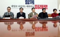 장동혁 국민의힘 대표(왼쪽 셋째)가 5일 국회에서 열린 최고위원회의에서 모두발언을 하고 있다. 연합뉴스 국민의힘 당무감사위원회가 5일 당협위원장 37명에 대해 교체를 권고했지만 지도부는 이들에 대한 교체 여부 결정을 지방선거 이후로 미뤘다. 한편 '특정계파 찍어내…