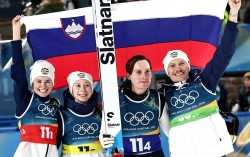 밀라노·코르티나담페초 동계올림픽 스키점프 혼성 단체전에서 금메달을 따고 기뻐하는 슬로베니아 선수들. 여자 스키점프 은메달에 이어 슬로베니아가 획득한 대회 두 번째 메달이다. 슬로베니아는 동계 종목뿐만 아니라 사이클·농구·축구·클라이밍 등 다양한 스포츠에서 월드클래스 선…