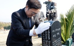 우원식 국회의장이 4일 광주망월묘지를 찾아 고 이한열열사 어머니 배은심여사 묘를 참배하고 있다. 뉴스1 우원식 국회의장이 4일 광주를 찾았다. 6·3 지방선거와 동시에 개헌안을 국민투표로 부치기 위한 동력을 찾기 위해서다. 우 의장은 오후엔 광주 5…