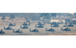 한미 연합연습 '자유의 방패'(FS·프리덤실드) 연습에 돌입한 10일 경기 평택시 팽성읍 주한미군기지 캠프 험프리스에 아파치 헬기가 계류되어 있다. 뉴스1 정부가 다음달 9일부터 열흘 간 시행되는 한·미 상반기 연합연습 ‘자유의 방패(Freedom Shi…