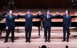 25일 예술의전당에서 열린 ‘아산 정주영 서거 25주기 추모 음악회-이어지는 울림’에서 피아니스트 김선욱·선우예권·조성진·임윤찬(왼쪽부터)이 연주를 마치고 관객들에게 인사하고 있다. [연합뉴스] 25일 오후 서울 서초동 예술의전당 콘서트홀, K클래식 음악…