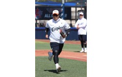 한화 이글스가 일본 오키나와에서 진행 중인 스프링캠프에 참여해 몸 만들기에 한창인 강백호. 스토브리그 기간 중 KT 위즈를 떠나 4년 간 최대 100억원을 받는 조건으로 유니폼을 갈아 입은 그는 매년 한화를 가을 야구 무대로 이끌겠다는 각오를 밝혔다. [사진 한화 이글…