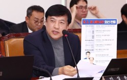 더불어민주당 이성윤 의원이 지난해 12월 9일 서울 여의도 국회에서 열린 비상계엄 사태와 관련한 윤석열 대통령 등의 내란 혐의 진상규명을 위한 상설특검 수사요구안 등에 관한 법제사법위원회 전체회의에서 계엄사태 관련 외신 반응 팻말을 들고 질의하고 있다. 뉴스1 …