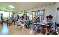 지난 11일 충남 청양군 남양면 흥산1리 경로당에 마련된 '찾아가는 의료원'을 찾은 마을 주민들이 진료를 받고 있다. 신진호 기자 지난 11일 낮 12시30분 충남 청양군 남양면 흥산1리 경로당. 구부정한 허리로 지팡이를 짚은 할머니와 밀차(유모차 모양의…