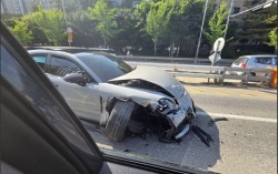 11일 경기 의정부에서 6중 추돌로 부서진 차. 연합뉴스 11일 오후 3시 26분경, 경기도 의정부시 금오동의 한 편도 3차로 도로에서 포르쉐 차량이 신호 대기 중이던 SUV를 뒤에서 들이받는 사고가 발생했다. 이 충격으로 SUV 앞에 정차 중이던 …