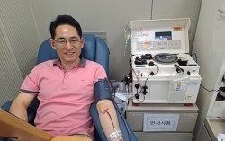 우익원 괴산군 정원산림과장이 지난 8일 헌혈의집 성안길센터를 찾아 109번째 헌혈을 하고 있다. 사진 괴산군 괴산군 우익원 과장 "체력관리가 장수 헌혈 비결" 29년 동안 매년 헌혈을 한 50대 공무원이 세계헌혈자의 날을 앞두고 109번째 헌혈을 했다. …