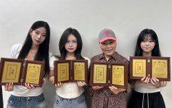 국립창원대 의류학과 학생들이 ‘여좌천 로망스다리 의상 프로젝트’에 참여해 창원시로부터 표창패를 수여받았다.(왼쪽부터 김예린, 성지윤, 최경희, 박혜민) 국립창원대학교(총장 박민원) 의류학과 학생들이 지난 3월 열린 제62회 진해군항제에서 ‘여좌천 로망스다…