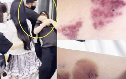 걸그룹 하츠투하츠 경호원이 공항에서 한 여성을 저지하고 있는 모습(왼쪽)과 이 여성이 공개한 폭행 피해 사진. 사진 틱톡·엑스 캡처 걸그룹 ‘하츠투하츠’ 과잉 경호 논란에 소속사 SM엔터테인먼트가 “사생팬 제지를 위한 대응이었다”고 입장을 밝혔다. 그러나…