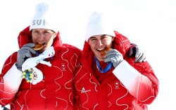 알파인 스키 남자 팀 복합 경기에서 우승한 뒤 대표팀 동료 네프(왼쪽)와 함께 금메달을 깨무는 포즈를 취하는 폰알멘. EPA=연합뉴스 생계유지를 위해 목수 일과 스키를 병행하는 등 각고의 노력 끝에 올림픽 챔피언에 올라 감동을…