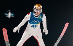 지난 9일(현지시간) 이탈리아 프레다초에서 열린 2026 밀라노·코르티나담페초 동계올림픽 스키점프 남자 개인전 1차 경기에서 다니엘 초페니그(오스트리아)의 비행 장면을 드론이 근접 촬영하고 있다. AP=연합뉴스 2026 밀라노·코르티나담페초 동계올림픽에서 선수 바…