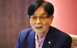문학계 원로인 이근배 시인이 12일 오후 서울 중구 코리아나 호텔에서 열린 시집 '아버지의 훈장' 출간 기념 기자간담회에서 취재진의 질문을 듣고 있다. 연합뉴스 “세상에! 이런 날이 찾아오다니/하늘, 땅, 바다…., 나라 안의 나라 밖의/우주의 우주보다 …
