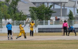 인천 아시아드 종합운동장에 있는 국내 유일의 크리켓 경기장에서 인도-파키스탄 출신 이민자 팀이 크리켓 경기를 벌이고 있다. 이영근 기자 인도와 파키스탄 출신 이민자 11명이 노란색, 파란색 유니폼을 차려 입고 도열했다. 선공은 파키스탄 팀. 인도 볼러(투수) 손을…