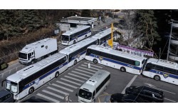 12·3 비상계엄과 관련한 윤석열 전 대통령의 내란 우두머리 혐의 사건 1심 선고를 하루 앞둔 18일 서울 서초구 서울중앙지방법원에서 경찰 관계자들이 펜스와 차벽을 설치하고 있다. 선고가 열리는 내일(19일) 윤 전 대통령 지지자들이 집결할 것으로 예상되면서 집단…