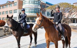 지난 12일 전북 남원 한국경마축산고에서 1학년 김도열(왼쪽)군과 2학년 이규리(오른쪽)양이 말에 올라타 파이팅을 외치고 있다. 장정필 프리랜서 2026년은 육십간지로 마흔세 번째 해인 병오년(丙午年)이다. 불(火)의 기운을 상징하는 병(丙)과 말띠 오(午)가 만…
