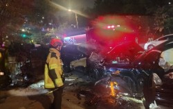 사고 현장. 연합뉴스 27일 오후 9시 20분쯤 인천 연수구 송도동 도로에서 70대 남성 A씨가 몰던 BMW 승용차가 차 6대를 연달아 들이받는 사고를 냈다. 이 사고로 얼굴 부위 등을 다친 A씨는 119구급대에 의해 병원으로 옮겨져 치료받고 있다. A…