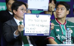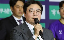 미디어데이 행사에서 새 시즌 각오를 밝힌 K리그1 팀들. 황선홍 대전 감독(위 사진)이 우승 도전 의사를 공개적으로 밝힌 가운데 강원, 안양, 전북, 제주, 인천, 서울(아래 사진) 등도 저마다의 핵심 키워드를 공개했다. [연합뉴스] “모든 팀의 표적이 …