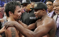 2015년 대결 후 서로 격려하는 매니 파퀴아오(왼쪽)와 플로이드 메이웨더. [AP=연합뉴스] 50대를 목전에 둔 복싱의 전설 매니 파퀴아오(48)와 플로이드 메이웨더(49)가 다시 링 위에서 격돌한다. 지난 2015년 세기의 맞대결을 벌인지 11년 만이…