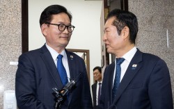정청래 더불어민주당 대표가 5일 서울 여의도 국회에서 송영길 전 대표와 면담을 마치고 배웅하고 있다. 뉴스1 정청래 더불어민주당 대표와 송영길 전 민주당 대표가 5일 국회에서 만났다. 이재명 대통령의 지역구이자, 송 전 대표의 옛 지역구였던 인천 계양을에서 출마 …