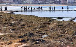 제주 해수욕장 점령한 검붉은 해조류 이달 9일 오후 제주시 이호해수욕장과 해안 등을 뒤덮은 괭생이모자반 사이로 관광객이 사진을 찍고 있다. 최충일 기자 지난 9일 오전 제주시 이호해수욕장. 푸른 바다와 흰 백사장 사이로 검붉은 띠가 길게 드리워졌다. …