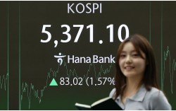 4일 서울 중구 하나은행 본점 딜링룸 전광판에 종가가 표시되고 있다. 이날 코스피는 전일 대비 1.57% 오른 5371.10, 코스닥은 전 거래일 대비 0.45%상승한 1149.43로 장을 마쳤다. 뉴스1 코스피 지수가 4일 기관의 순매수에 힘입어 5370선을 …