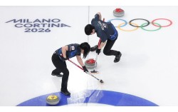 (코르티나담페초=뉴스1) 김성진 기자 = 컬링 믹스더블 김선영과 정영석이 5일(현지시간) 이탈리아 코르티나담페초 컬링 올림픽 스타디움에서 열린 2026 밀라노·코르티나 동계올림픽 컬링 믹스더블 라운드 로빈 대한민국과 이탈리아의 경기에서 스위핑을 하고 있다. 2026.2…