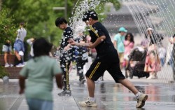 초여름 날씨가 나타난 지난 14일 서울 광화문광장 분수터널에서 시민들이 더위를 식히고 있다. 뉴스1 중부지방 곳곳에 소나기가 내리는 가운데, 낮에 구름이 걷히면서 기온이 크게 오를 전망이다. 21일은 온종일 더운 가운데 전국에 많은 비가 내리며 후텁지근할…