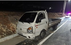 14일 자정께 대전 유성구 봉명동 한 도로에서 술을 마신 채 운전하다 주차된 차량을 들이받은 뒤 현장을 이탈하고, 경찰의 정차 지시도 무시한 채 도주한 만취 운전자의 트럭. 유성경찰서 제공 설 연휴 첫날 음주운전을 하다 사고를 내고 14㎞가량 도주한 50대가 경찰…