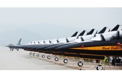 9일 경기도 평택시 주한미공군 오산기지에서 열린 ‘오산 에어 파워 데이 2025’에서 블랙이글스 비행기 옆으로 F-16 전투기가 지나가고 있다. 연합뉴스 주한 미 공군기지 내에서 열린 에어쇼 행사장에 들어가 전투기를 무단 촬영한 대만인 2명이 구속됐다. 1…