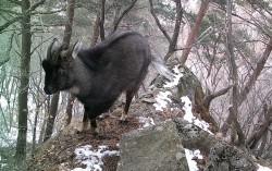 무인카메라에 포착된 멸종위기 1급 산양의 모습. 사진 조영석 대구대 교수 3년 넘게 백두대간 일대의 험준한 산지를 다니면서 산양의 흔적을 쫓았다. 조사 중 나뭇가지에 귀를 다쳐 고막이 파열되기도 했다. 국내 첫 산양 지도를 만든 조영석 대구대 생물교육과 …