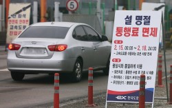 지난 13일 경기도 성남시 경부고속도로 서울톨게이트에 설 연휴 고속도로 통행료 면제 안내문이 설치돼 있다. 통행료 면제 기간 및 대상은 15일 오전 0시부터 18일 자정까지 잠시라도 고속도로를 이용하는 모든 차량이다. 기사의 내용과 관계 없음. 연합뉴스 …