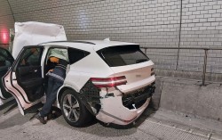 15일 오전 0시 40분께 거제시 양정터널에서 사고를 일으킨 제네시스 SUV. 거제소방서 제공 경남 거제에서 면허취소 수준의 만취 상태로 운전하던 30대 여성이 앞차를 들이받아 40대 남성이 사망하는 사고가 발생했다. 거제경찰서에 따르면 15일 오전…