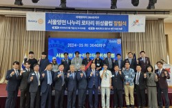 ▲국제로타리 3640회원들과 참석자들이 파이팅하고 있다. 세종대학교(총장 엄종화)는 “국제로타리 3640지구와 세종대가 5월7일 대양AI센터에서 ‘서울양천 나누리 위성클럽’ 창립식을 성황리에 개최했다”고 밝혔다. ▲세종대 엄종화 총장과 조홍규 총재 기념찰…