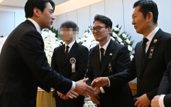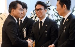 윤상현 국민의힘 의원이 28일 오전 서울 종로구 서울대학교병원 장례식장에 마련된 故 이해찬 전 국무총리의 빈소에서 조문후 김민석 총리와 정청래 민주당 대표와 인사하고 있다. 사진공동취재단 이해찬 전 국무총리 장례 이틀차인 28일 보수 야권 인사들이 잇따라 빈소를 …