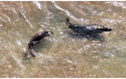 지난해 10월 충남 서산·태안 가로림만에서 방류된 점박이물범 한 쌍이 다시 돌아와 재회할지에 관심이 쏠리고 있다. 강원도 동해안에서 구조된 뒤 치료와 자연 적응 훈련을 마친 점박이물범 봄이와 양양이가 지난해 10월 16일 충남 서산 가로림만에 방류되고 있다. [사진 충…
