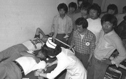 1980년 5월 21일 5·18 당시 계엄군의 집단 발포 직후 “환자를 수술할 혈액이 부족하다”는 소식에 시민과 학생 등이 광주 적십자병원에서 헌혈을 하기 위해 대기하고 있다. [중앙포토. 이창성 전 중앙일보 기자] “여러분, 적십자병원에 안치되었던 시민들이 이곳으로…