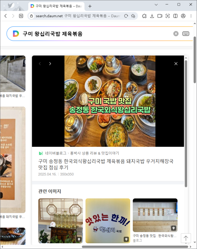네이버나 다음에서 - 구미 왕십리국밥 제육볶음-이란 키워드로 검색하면 이렇게