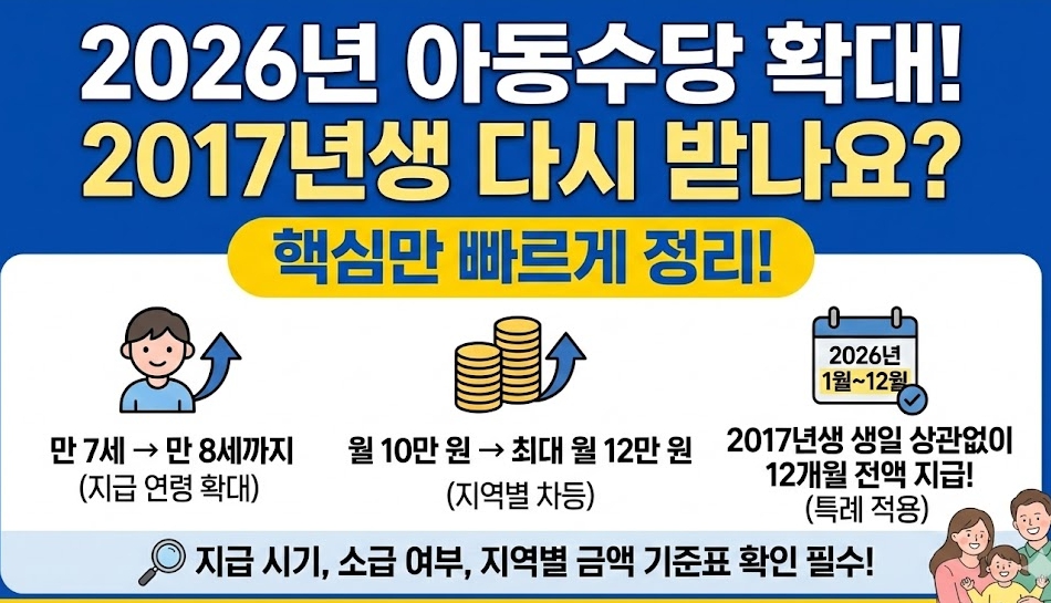 [팁] 2026 아동수당, 2017년생 다시 받습니다 (지급연령 확대 핵심만 정리)