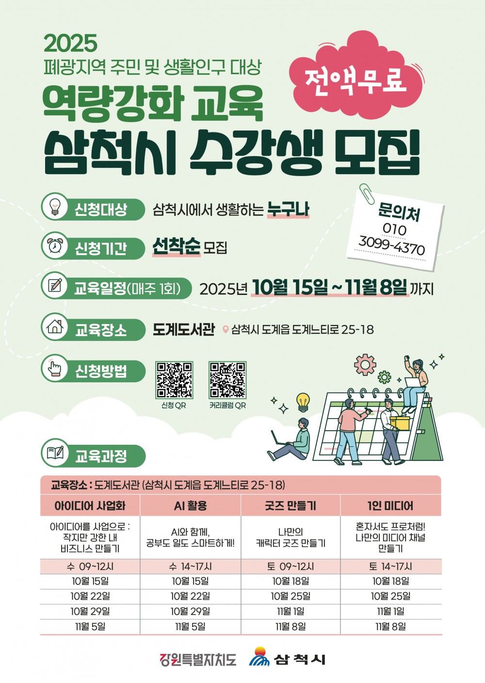[삼척시] 2025 폐광지역 주민 및 생활인구 대상 역량강화 교육 수강생 모집