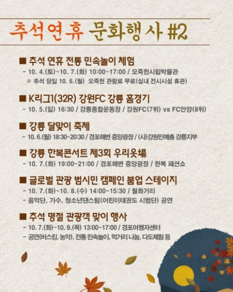 [강릉시] 추석연휴 문화행사 알려드립니다