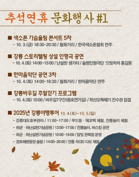 ○ 2025년 강릉야행투어: 10. 4.(토)~10. 5.(일)
