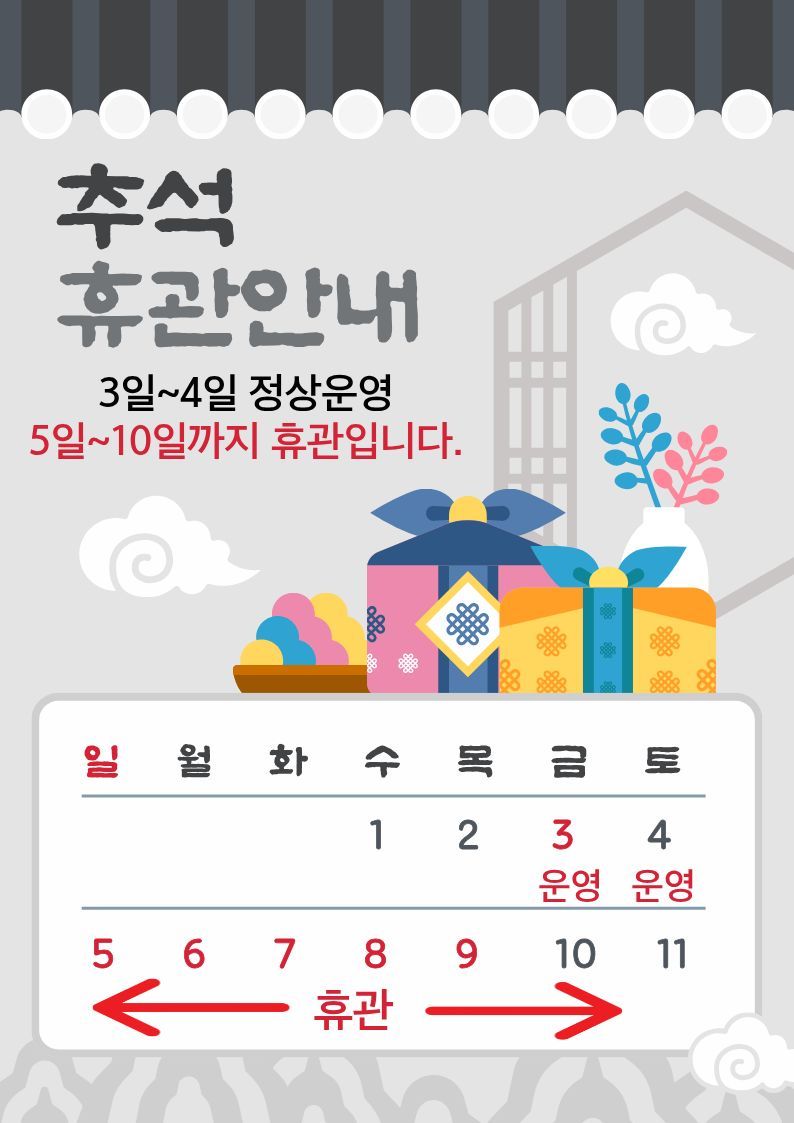 1. 휴관일 : 2025. 10. 5.(일) ~ 10. 10.(금), 6일 간