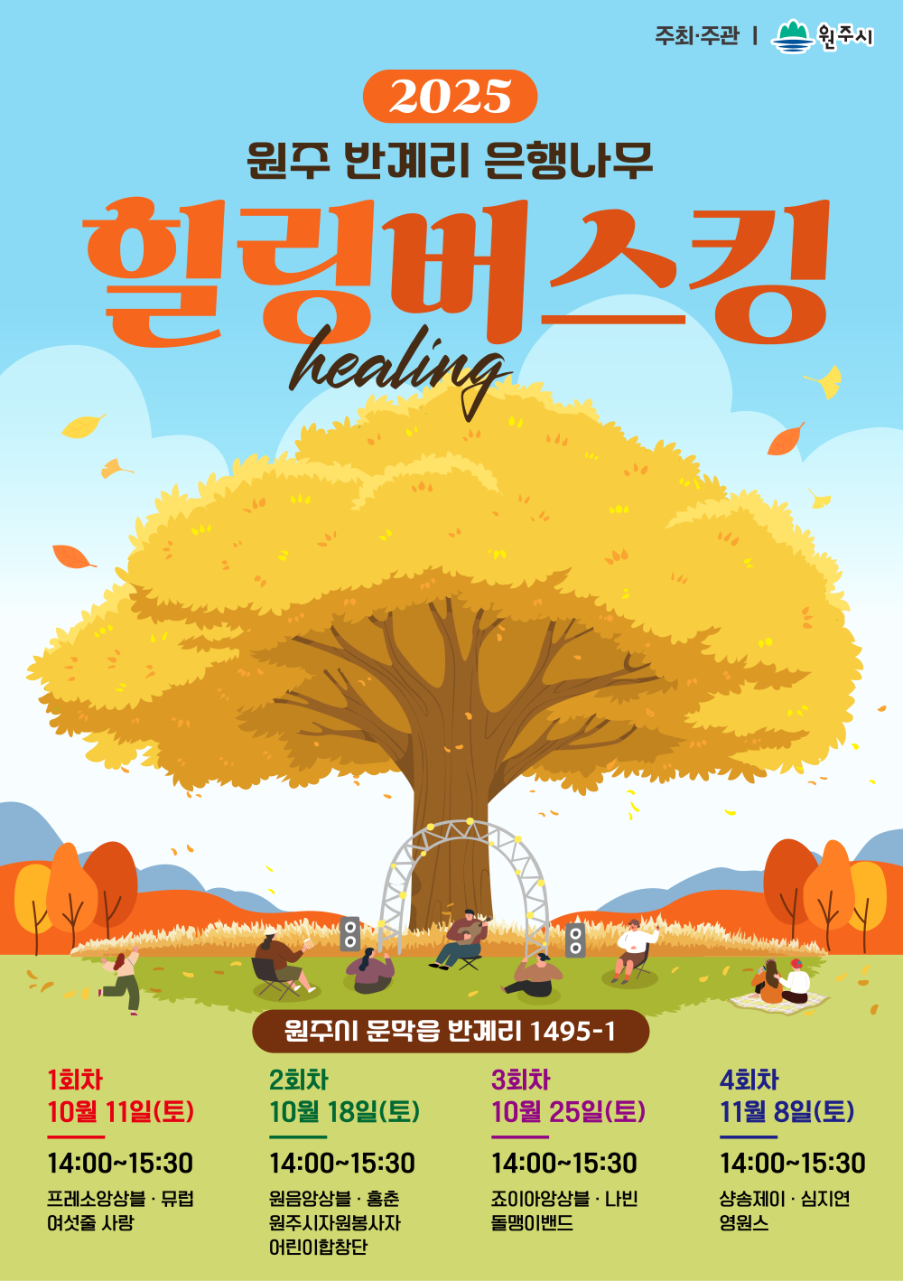 - 행사내용: 반계리 은행나무 연계 힐링 공연(지역 아티스트 공연) 제공