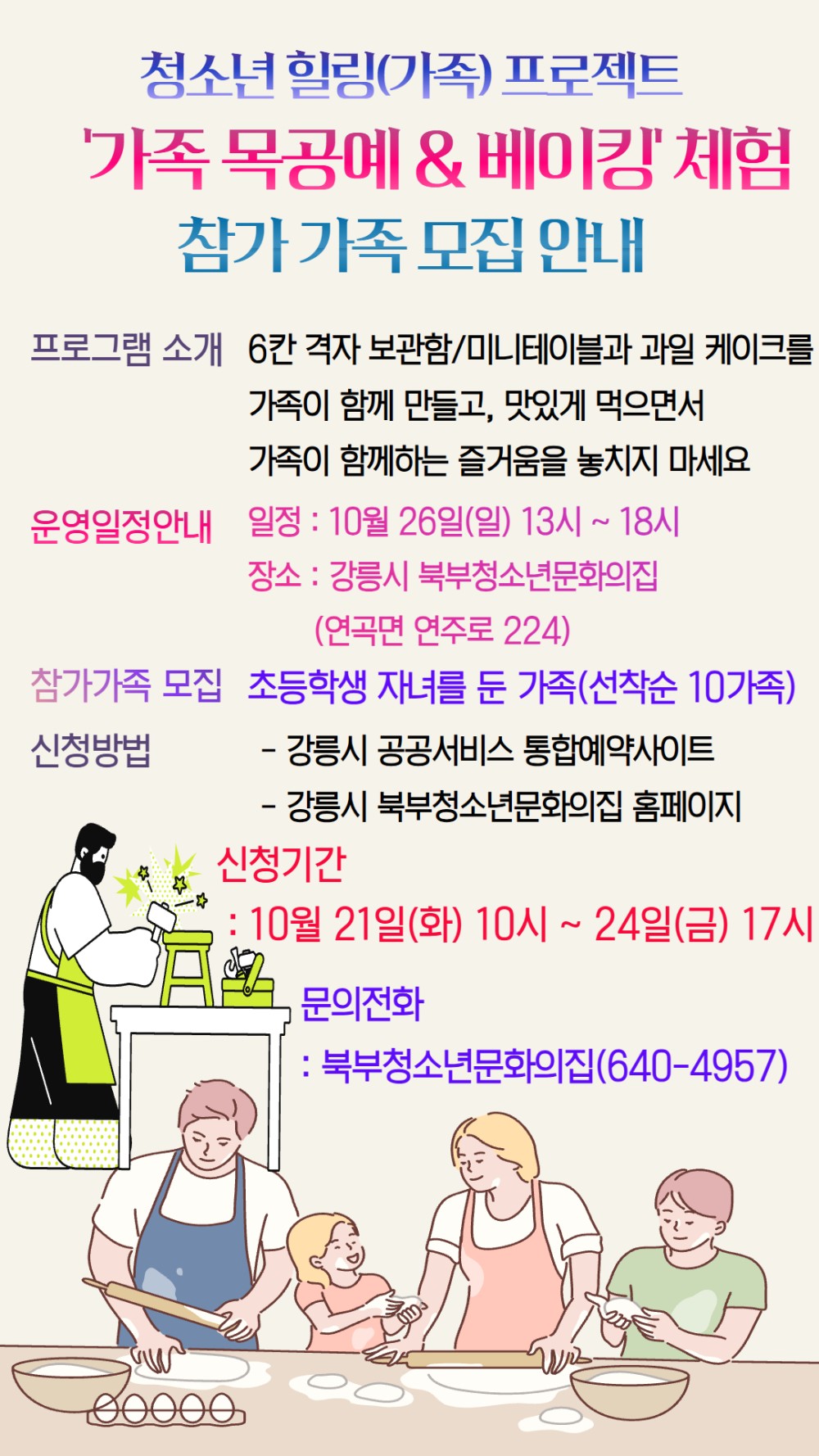 [강릉시] ‘청소년 가족 목공예 & 베이킹’프로그램 운영 안내