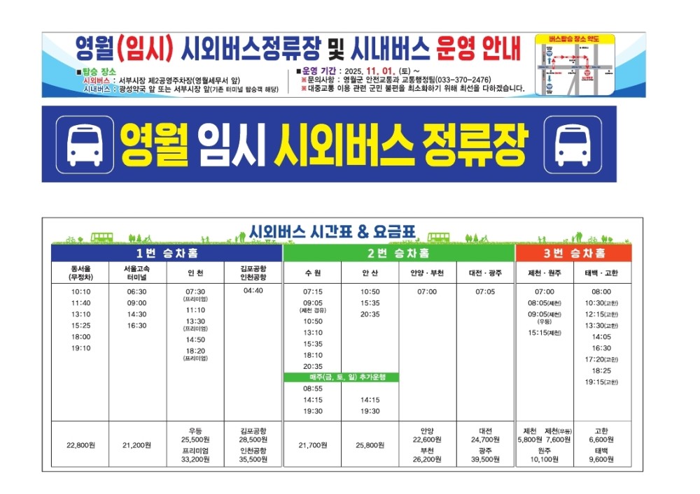 [영월군] 영월군 임시시외버스정류장 운영 안내