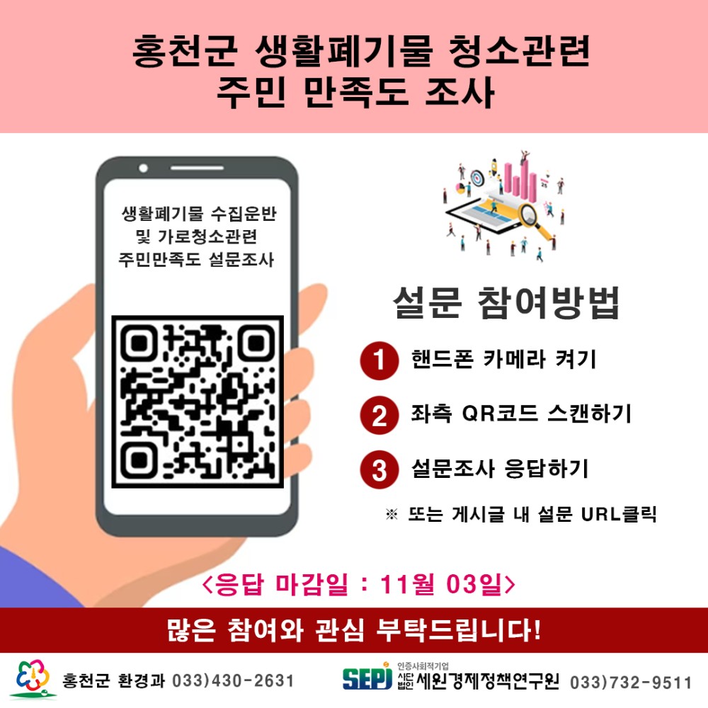 [홍천군] 2025년 생활폐기물 수집운반 및 가로 청소 대행 업체의 만족도 설문조사 알림
